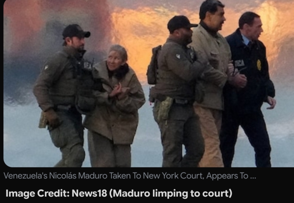 5 जनवरी को वेनेजुएला के राष्ट्रपति निकोलस मादुरो और उनकी पत्नी सिलिया फ्लोरेस को न्यूयॉर्क स्थित मैनहट्टन फेडरल कोर्ट में पेश किया गया। कोर्ट रूम में मादुरो ऑरेंज जंपसूट पहने हुए दिखाई दिए और चलते समय वे लंगड़ाते नजर आए, जिससे यह आशंका जताई जा रही है कि हाल ही में हुए किसी ऑपरेशन के कारण उन्हें चोट लगी हो सकती है। सुनवाई के दौरान मादुरो ने नार्को-टेररिज्म, ड्रग ट्रैफिकिंग और अवैध हथियारों से जुड़े वर्षों पुराने आरोपों पर खुद को निर्दोष बताते हुए “नॉट गिल्टी” की दलील दी। इसके साथ ही उन्होंने कोर्ट में दावा किया, “मुझे किडनैप किया गया है, मैं आज भी वेनेजुएला का वैध राष्ट्रपति हूं।” वहीं उनकी पत्नी सिलिया फ्लोरेस पूरे समय उदास और थकी हुई दिखाई दीं। कानूनी विशेषज्ञों के अनुसार यह ट्रायल कई महीनों तक चल सकता है और यदि मादुरो दोषी पाए जाते हैं, तो उन्हें आजीवन कारावास तक की सजा हो सकती है।